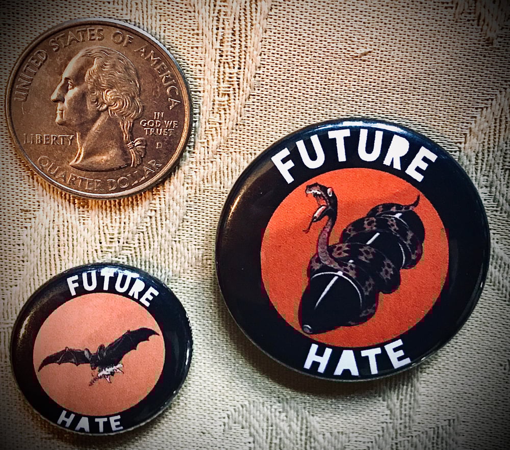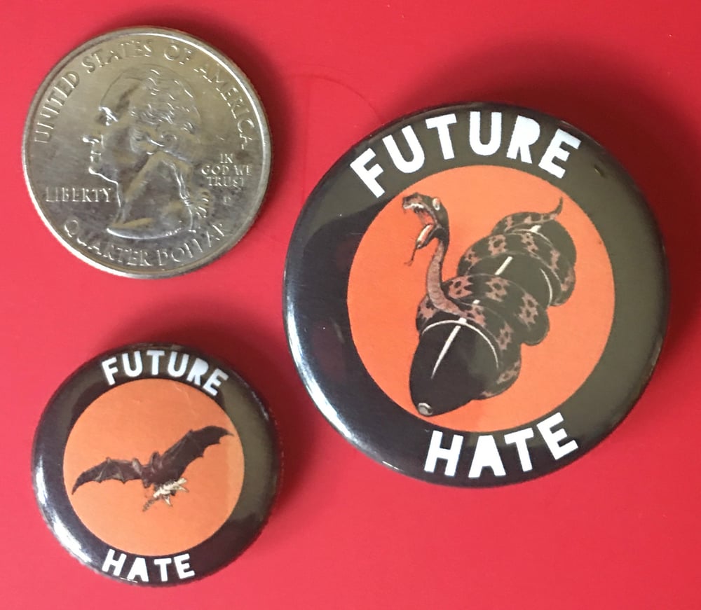 Two designs, each available as magnet and badge. $4 postage paid gets you 2 magnets (1 snake, 1 bat) AND 2 badges (1 snake, 1 bat)