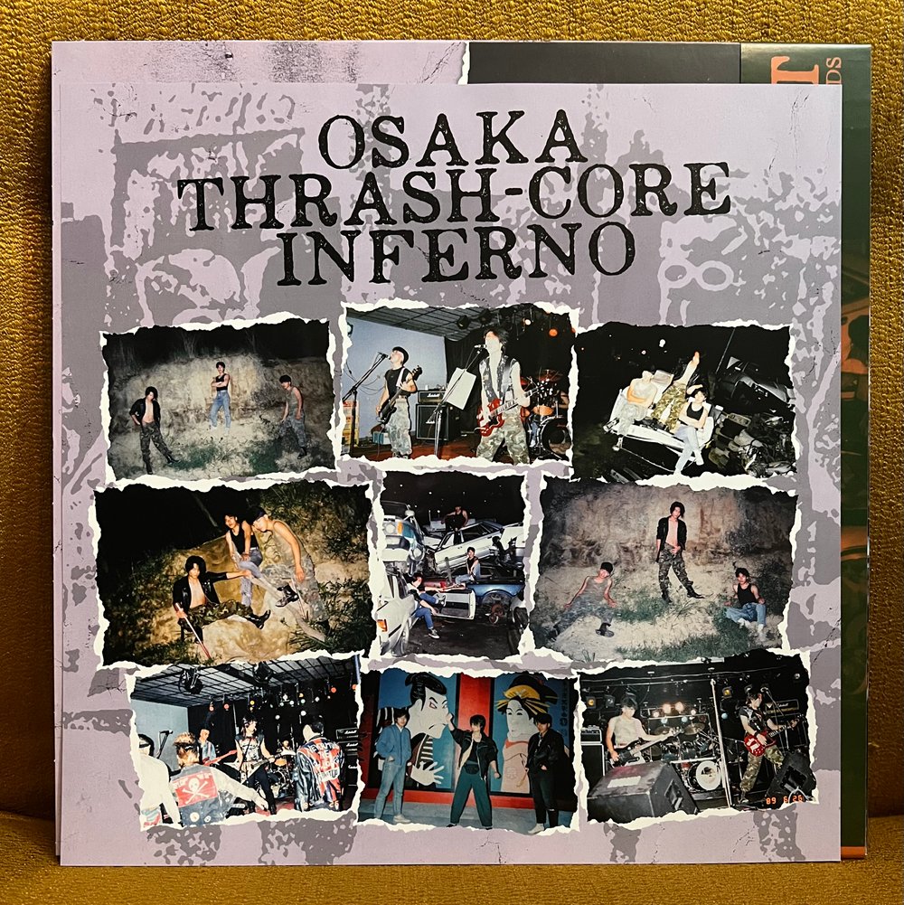 By popular demand we have decided to make this fast thrash classic available again.. New edition with different sleeve and vinyl colors, pressed from a way better lacquer cutting than the 1st edition. Osaka Thrash-core inferno!! Reissue of their cult flexi disc "Another religion another violence" (1987) and rare "Motive of genocide" Demotape (1988). These shortly lived skullcrushers were responsible for some of the fastest and most furious Japanese Hardcore blended with mad thrashing riffs and vitriolic screams. If you're possessed by the abuse of speed and aggression of bands like S.O.B., Outo, Gudon, Brain Death, Googolplex, Systematic Death etc. you can't go wrong with this, just put this record up and you'll be smashed by a bloodshed of manic fast ferocity! One sided LP with silk-screened artwork on the b-side, OBI strip and insert with rare photos + scans from the EP and demotape.